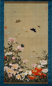 Pivoines et papillons, couleurs sur soie 142 x 79,8 cm. © Sannomaru Shōzōkan (Musée des collections impériales), Bureau de la Maison impériale, Tokyo.