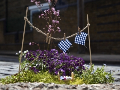 « le Guerilla Gardening » ou comment parler de jardinage urbain…Il s’agit en fait de mini bouts de jardin et de scènes champêtres qui sont recréés sur le pavé . Le concept est British ,100% écolo et considéré comme une nouvelle forme de « street art » .