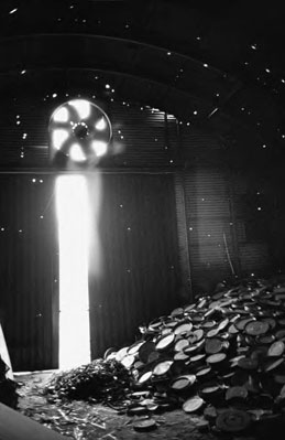 Ce visuel d’appel et de réponse ,cette manière propre au photographe de disséquer le moment et de créer l’écho pictural avec cette photo du cimetière plus grand encore que la ville et de cette salle de projection plutôt « cimetière » de bobines de films qui s’entassent a même le sol sont la traduction immédiate de l’ordre social …du sens de la vie des gens.